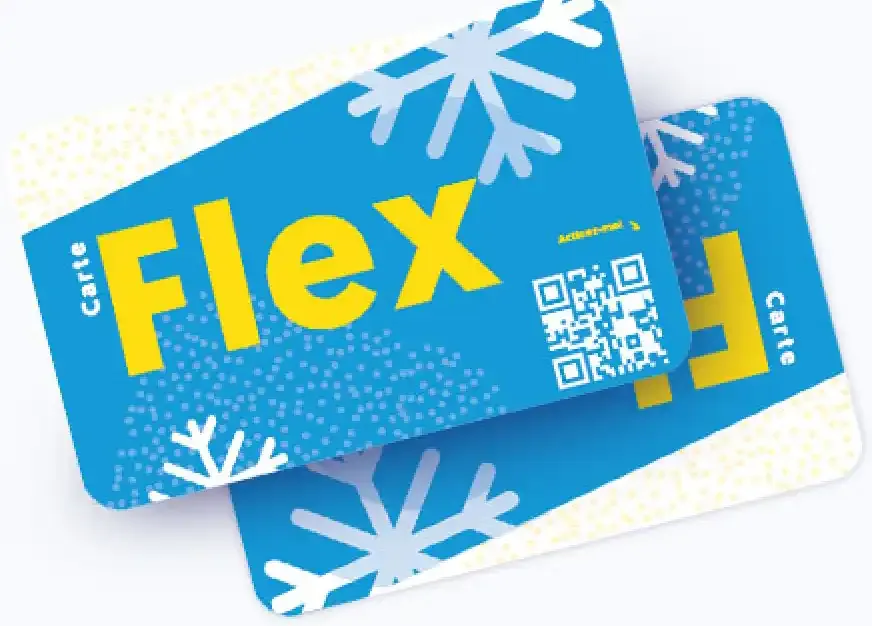 The Flex card divides the ski area into 4 zones (magic carpet, beginner, mini area and large area) with corresponding prices.